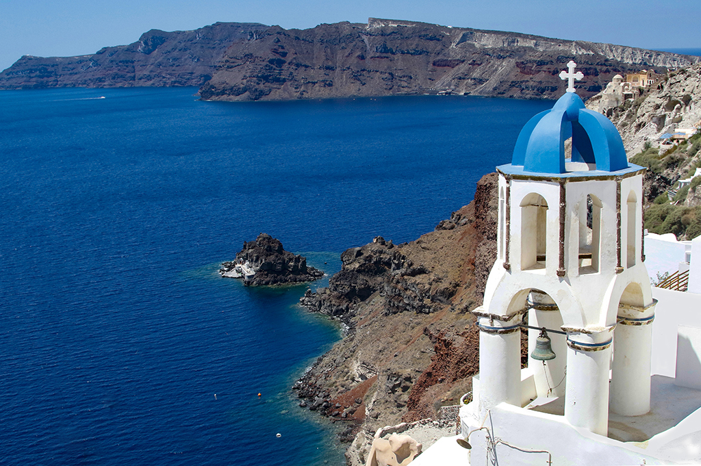 Beautiful photo. I love the composition, how the church is positioned on the right looking out over the water and the cliffs in the background. Very nicely done.