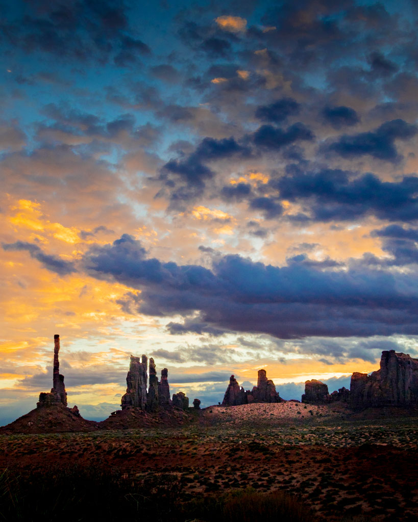 I think the image could benefit by lightening the foreground so that we can see the details. I created a mask of the sky by selecting the entire foreground including the formations, then inverting this so that I had a selection of the sky. This was saved. I then created an image adjustment layer (exposure), loaded in the sky selection, and filled with black creating my mask. I now could adjust the exposure but only affect the foreground, not the sky (beautiful sky btw!!). I increased exposure by 3 stops. This gives you an idea of what you can do. Play around with it, try various tools to lighten the foreground. The hardest part is making the selection in the first place. I used the "magic wand" and then the "polygonal lasso tool" to get the parts that didn't get captured with the magic wand.