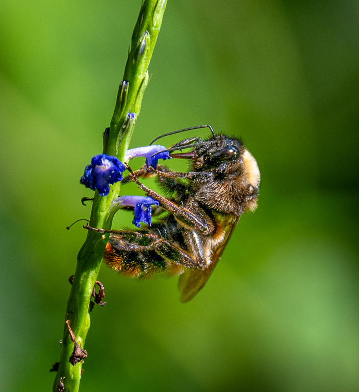 As Josh pointed out, the shadow detail could be improved. By creating a mask of the insect in Lightroom, then moving the Shadows slider to the right, you are able to increase the detail in the darker areas of the bee without affecting the green background.