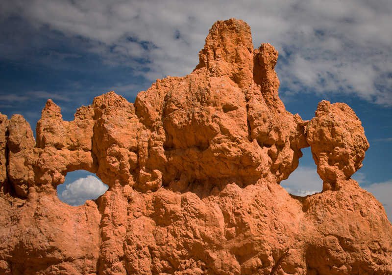 Bryce is a neat place. Good catch, showing good creativity by placing clouds in the holes. Did you have to wait long for the clouds to move into the correct location?