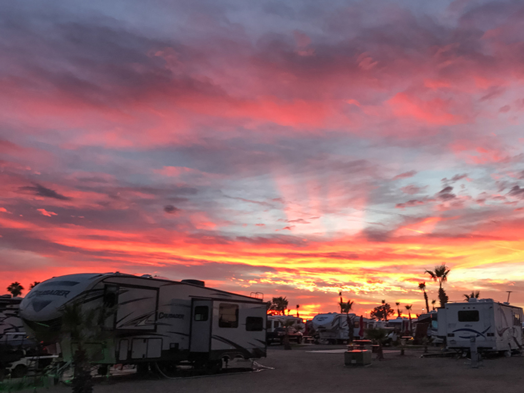 At first I felt the light rays were almost a distraction, but as I looked they did become the special feature of this particular sunset. I kind of like the palm tree for the sense of place it lends, but Vince's crop definitely has merit - now the sunset stands alone as the focal point. I felt there were several distractions in the foreground. I cloned out the trailer lights in the lower left, and reduced or eliminated several bright spots such as taillights and a window reflection. While I was at it, I decided to try leaving more of the foreground by cloning out the shiny pad in the center. I use my cell phone a lot, and it's often not possible to "get it right in the camera," but with the post-processing at our disposal many improvements and corrections are possible. This was a beautiful photo to practice on. |
