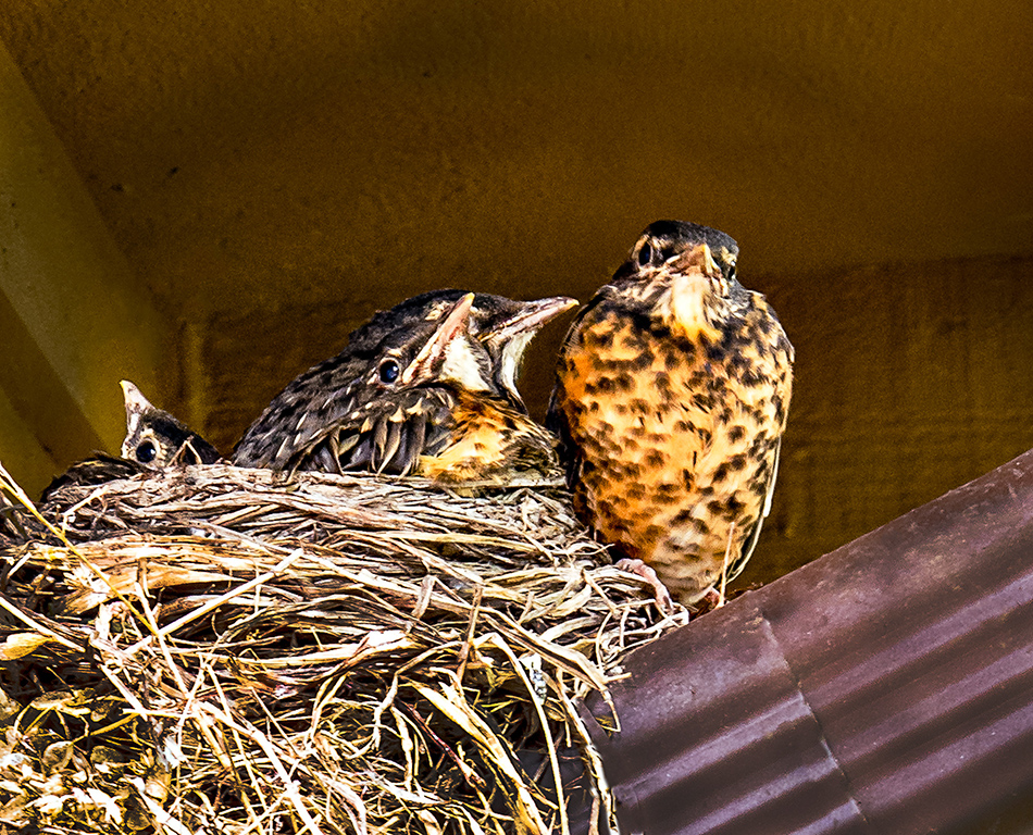 I agree it's a great picture of a special moment. I found the yellow sun patches distracted me from the subjects, so I took it into Photoshop and cloned them out. I also cloned out a spot of light on the baby's head, and added a little light to the faces. |