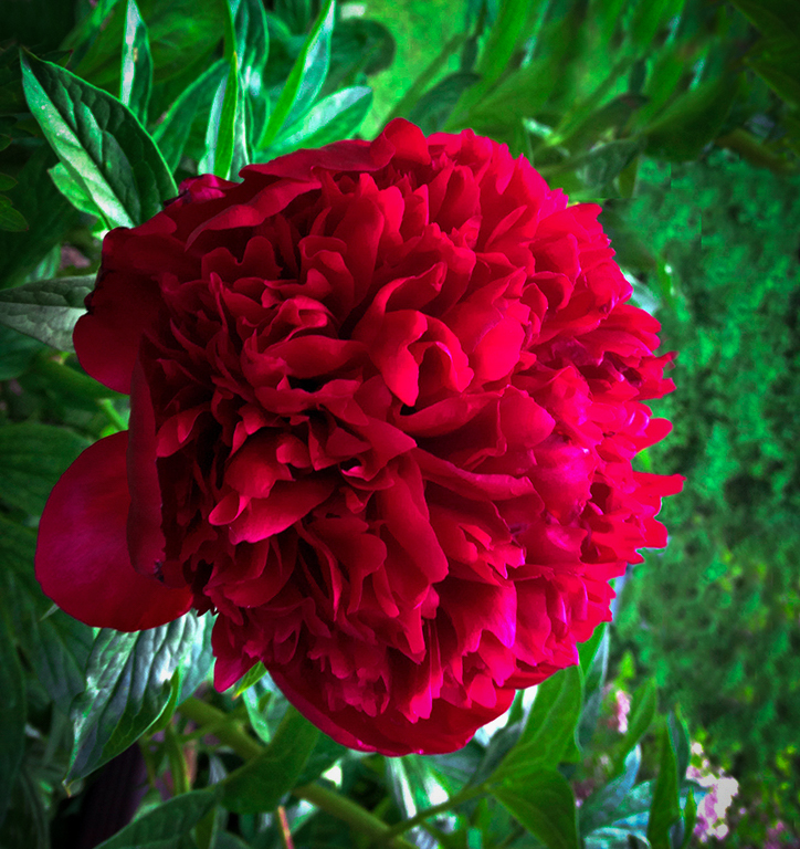 I think I don't use a vignette often enough, and I can really see where it would improve this photo. It would soften the bright edges of the frame where it feels like I'm "falling off a cliff," as well as bridging the sharp red/green contrast, and put the focus right where it should be on the flower. Had trouble resurrecting how to do a vignette in Photoshop and finally resorted to Lightroom. How do you do it? Here's what I came up with. |