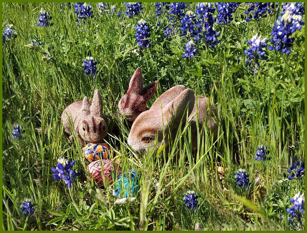 I think you really caught the spirit of the season. I really like the arrangement and placement of the bunnies and eggs. I thought it might be nice to have some bluebonnets in the foreground, so I played with it a little in the thumbnail. |