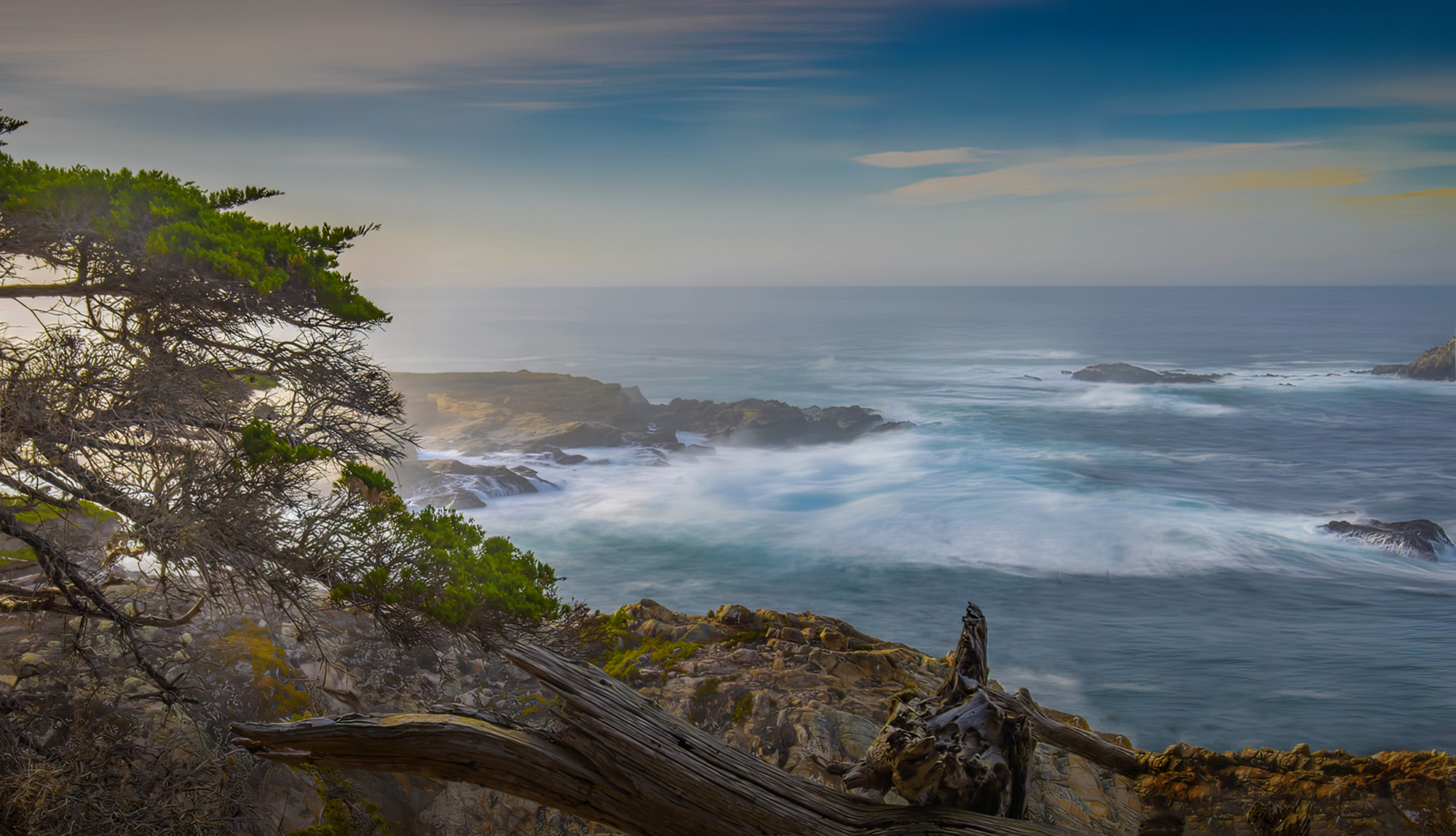 What a beautiful spot for photography. Gorgeous colours and textures. Although the bright blue sky at the top, right - looks a bit off on my monitor, but no biggie. As far as the composition is concerned, I see 2 major points of interest - the waves/water and the foreground. For my eyes, they compete a bit with each other. I took the liberty to play with it a bit, and cropped it to focus more on the water and waves - personal taste. What do you think? |
