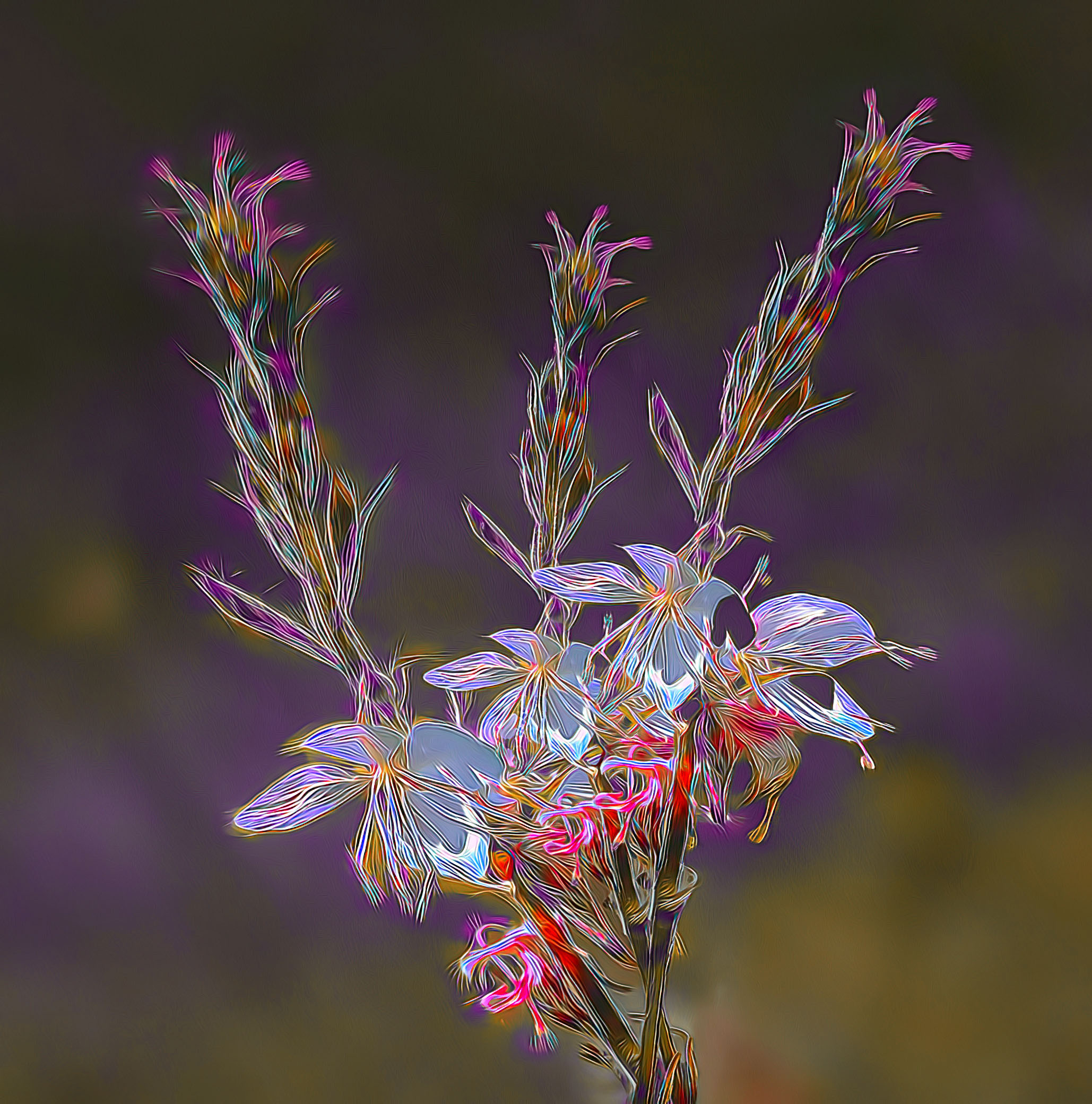 Used a white background and the Difference blending mode - worked OK, but changed all the colours - i.e. magenta turned to green, etc. So off to Topaz Studio 2 - played with HSL to get the magenta back, which I did, but other colours were still different from your image. That's where I stopped. See what you think. Sorry for the departure from your picture.