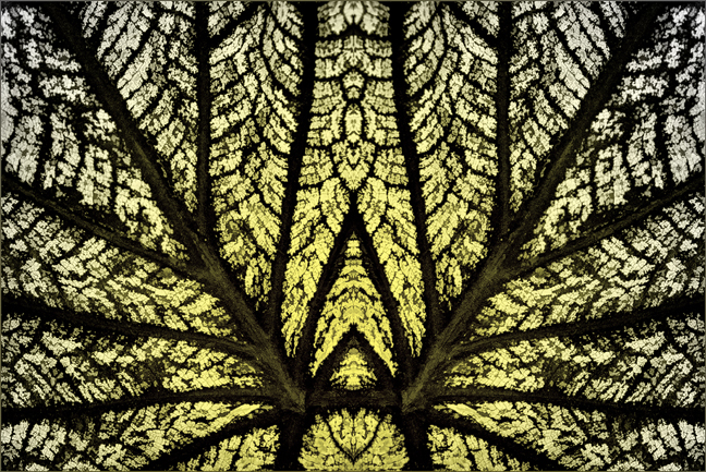 Nice creative image - really like the composition as the lines help the eyes explore the image. Also find the patterns interesting. If it were my picture, I think I would add a touch of colour for added interest - without taking away from the details, such as the patterns. See what you think. Added it with the Gradient Radial tool. |