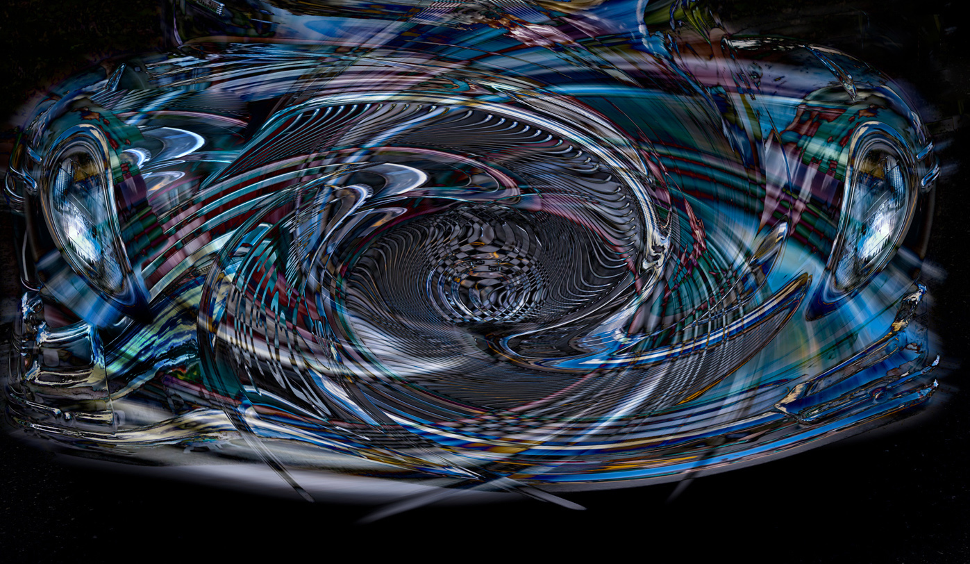 A very nice Altered Reality image. I find the filter effects very suitable for this subject. Well done. A couple of suggestions - clone out the 'extra pieces' in the upper right corner and match the headlights to maintain the balance of the front of the car.