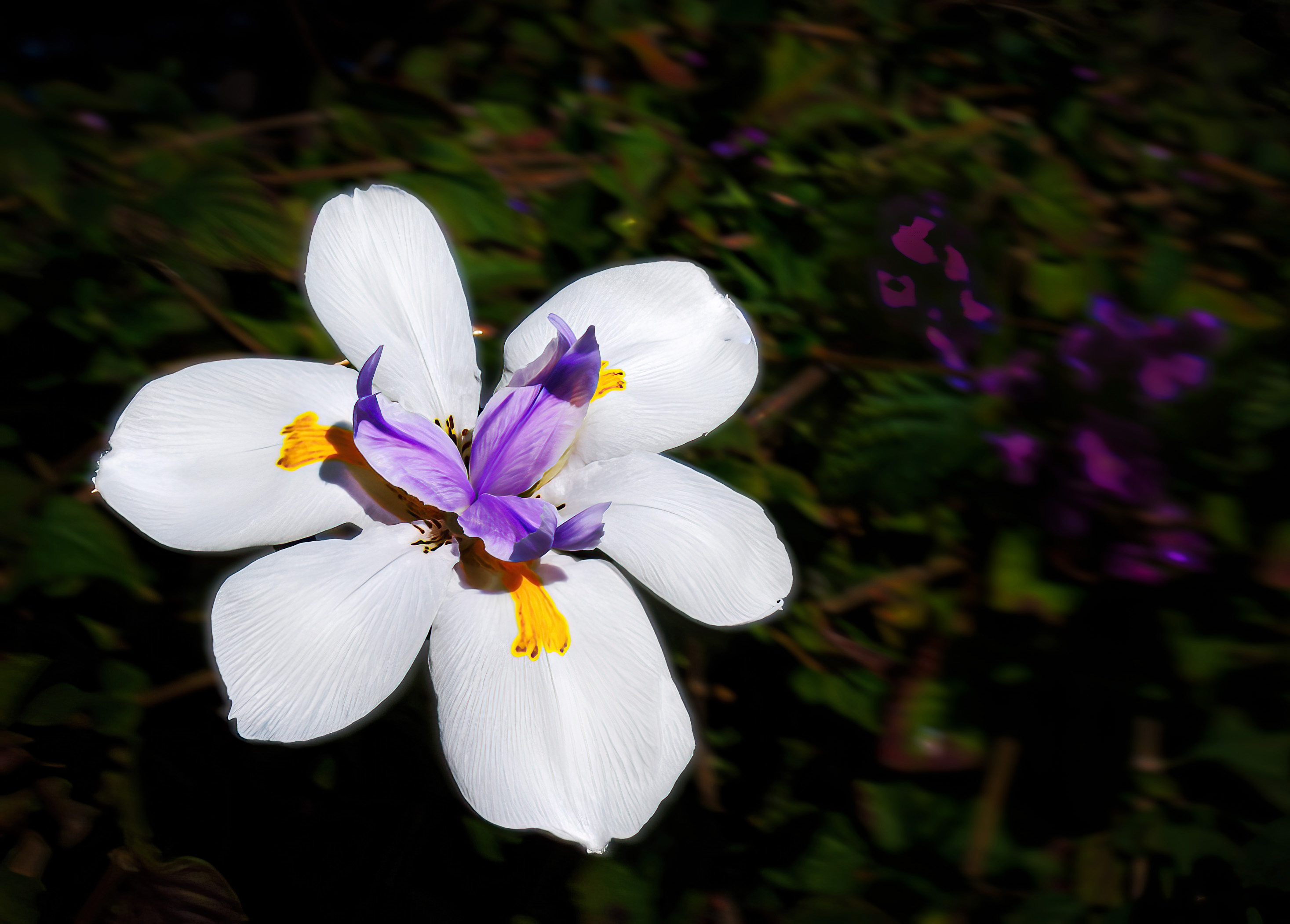 I like the composition of this picture - really suited to the subject. Not sure if you feel the same, but white flower petals make me nuts. Trying not to blow them out, and capture some detail, is a real challenge for me. In my version attached, I tried to sharpen the blossoms, and managed a wee bit of increased sharpness with Topaz Sharpen - but unfortunately left a bit of a border shadow. I also toned down the red, purple flowers on the right, as they were a bit distracting for me. See what you think. |