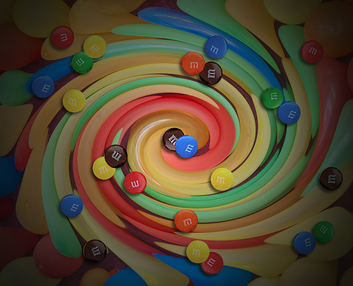 Like this whimsical image. The colours are very effective and happy. Adding the candies made the picture for me. To reinforce the twirl and add some depth I added a radial filter to darken the outside - maybe a bit too much. See what you think of this version. |