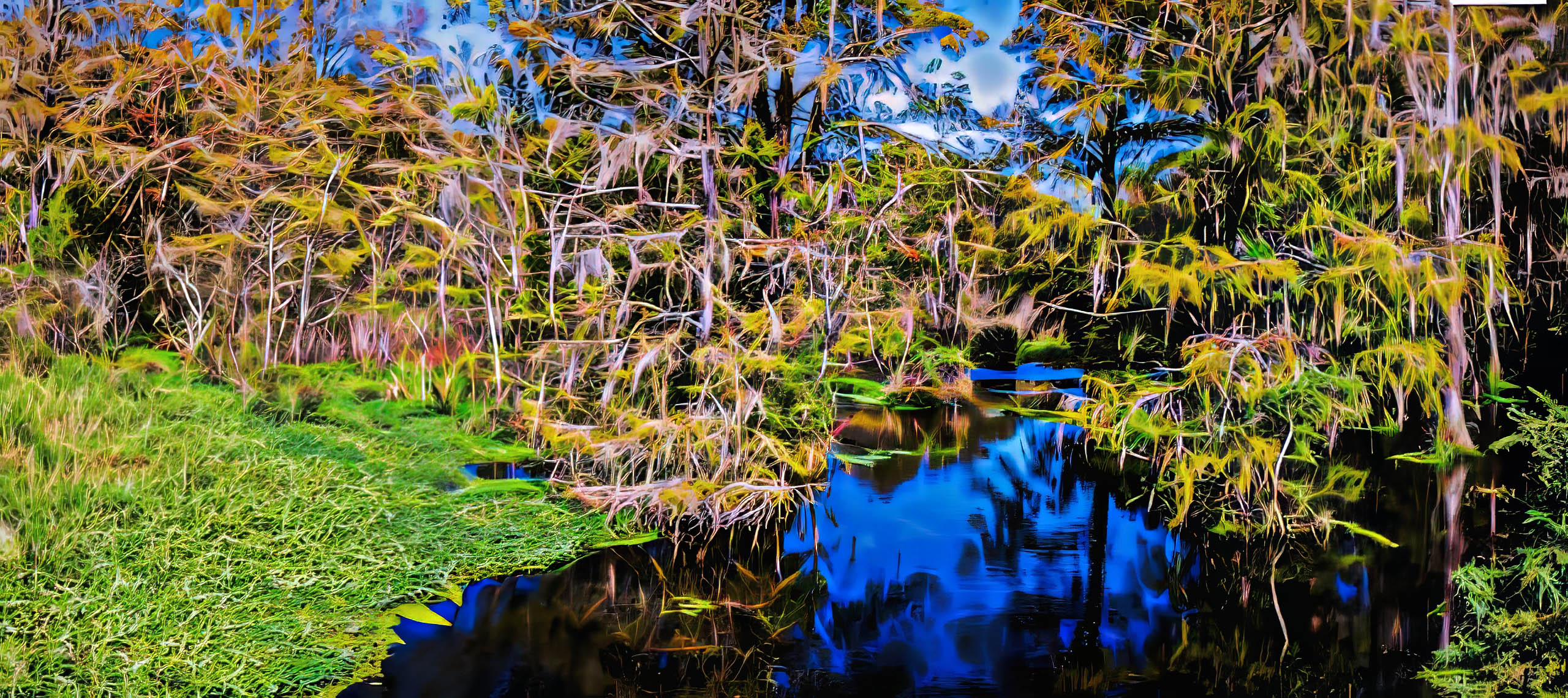 Very nicely done. Like the effect quite a lot. As a matter of fact, also like Bobs version. They are quite different, and both keepers. My only suggestion is to provide more room on the sides and top - the trees look a little cramped to me. |