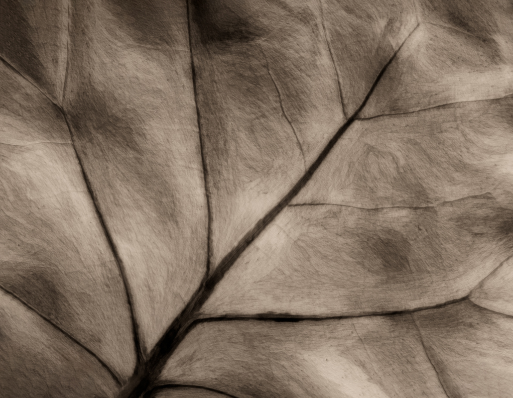 Nice close up - beautiful muted sepia treatment. For me, there is not enough going on to focus on. The leaf veins are nice to help the eyes travel through the image, but the textures don't grab me. Sorry.