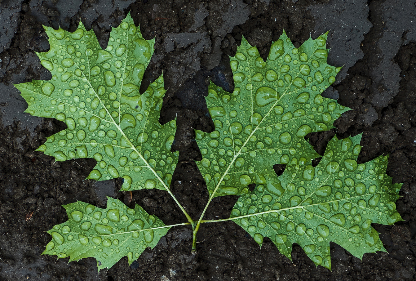 Nice nature study - beautiful leaves and raindrops. I'm not overly fond of the background - a bit too light for my taste. See my version, which for me makes a leaves pop a bit more.