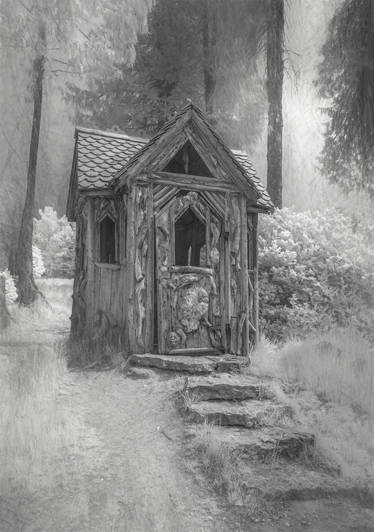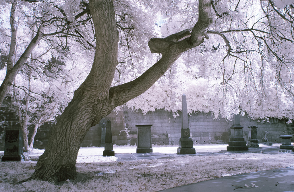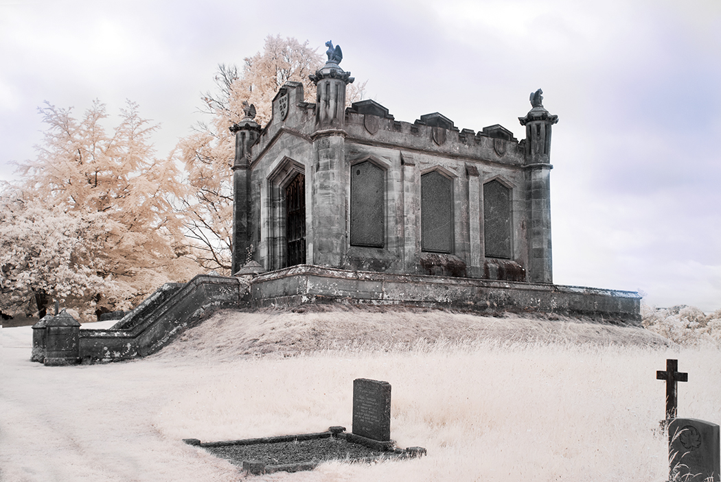 Cemetaries are great places for IR photography and you have managed to capture the spirit of this one including part of a mausoleum and different types of headstones. It appears as though it was a very contrasty sunny day which might not have helped you. I do like the long shadows coming from the mausoleum, and you have managed to retain detail in the light areas. There is however quite a bit of noise showing, particularly in the top right hand corner in the featureless sky area. Overall a very worthy effort especially in your early experimental days. |