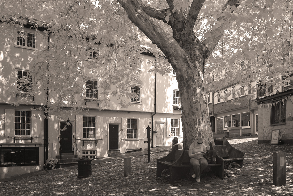 Phew Henry you certainly know how to get the most out of your IR system. Good image though it would have been, the inclusion of the figures has made it a great image, much more so that they are against the backdrop of Yellow. the composition is brilliant, with the superbly shaped bridge leading your eye into the scene. The inclusion of the drooping leaves from above is a master stroke. I did wonder if the Yellow was too strong, but this is colour IR and totally different from conventional colour and here you have used it to its full potential. Lovely. |