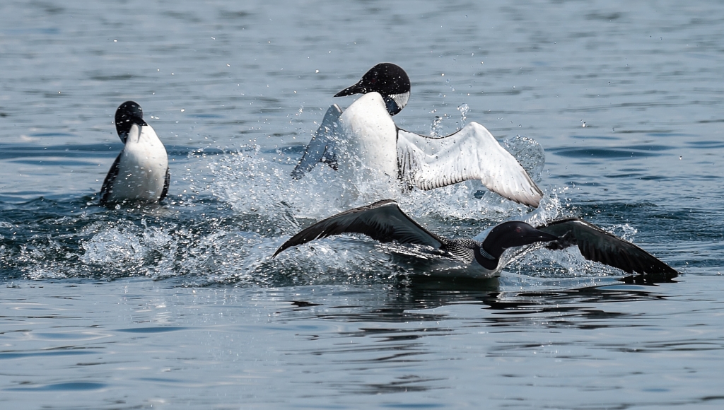 Like always I was a little slow to catch the wonderful detail in the image. Typical of your work. I would have liked a difference in the lighting to capture the eye a little better perhaps a flash with the shortest of burst. I tried bring up the eyes, especially on the escaping loon. Without regard immaterial techy things what a great capture with a wonderful story. |