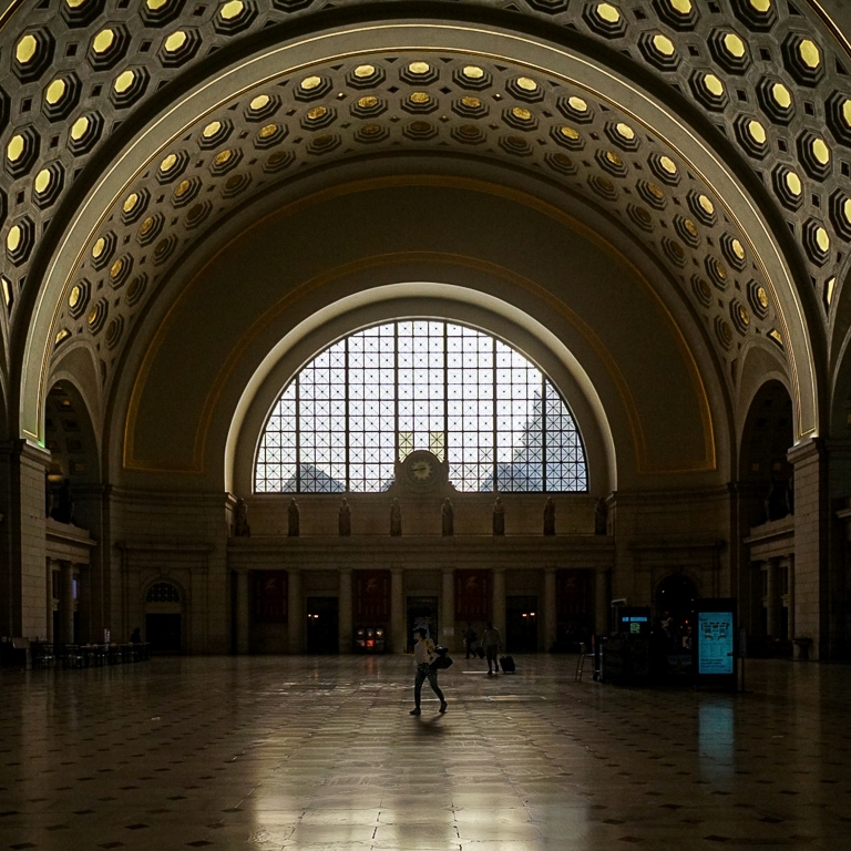 Wow!!! what a great time to capture a one time image of Union Station. It really imparts the feeling and emotions of separation including, perhaps, the loneliness of our current time. Bringing out the individual, as Stan suggests, can be done with reveal shadows. I did a quick version to consider. |