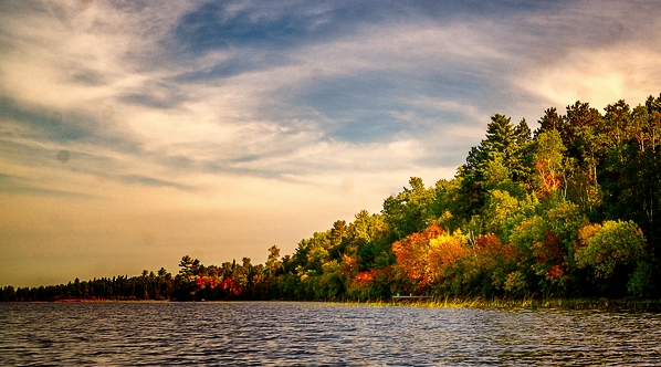 Fall is a lovely time of year (even if winter is not your favorite :>). I think the color image is needed to show the beauty of fall however, I would have cropped in a bit more to bring out the cluster of trees showing the greatest fall colors. Just a quick suggestion but your image is truly nice. |