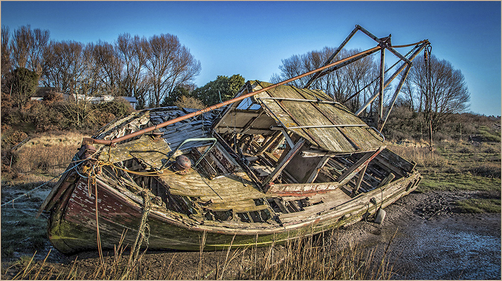 Ian, nice image of a well weathered by the elements boat. I agree with Bill's removal of the distracting elements and adjustment of the colors/contrast. I added more light to the shadows so we can see more detail of the boat |