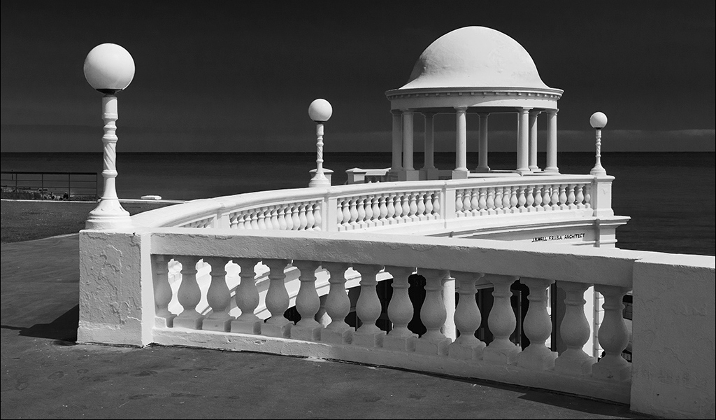 Guy, interesting B&W image. It is sharp. I like the way the fence leads you to the main building, and the three poles with the spherical structures on top frames the image. Good contrast. I cropped a little from the top to move the horizon's line away from the middle of the image. |