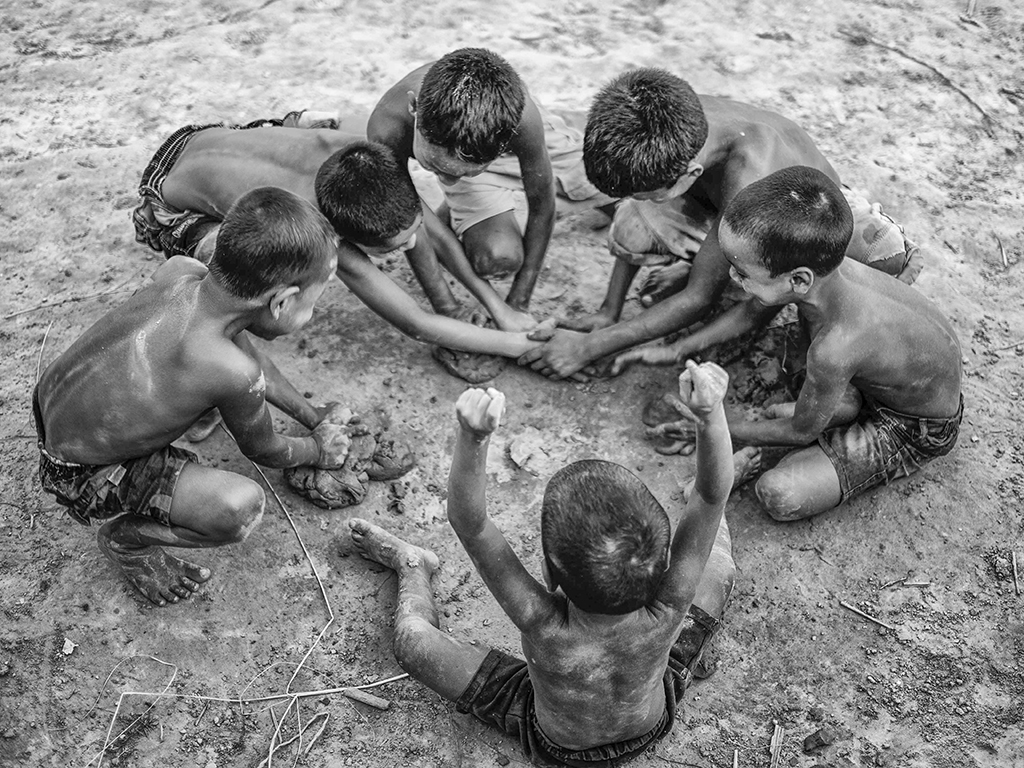 Mofassirul, this is an interesting image of a group of children playing with mud. In spite of the fact that we do not see any of the faces, they seem to be having a good time with a very simple activity. The image is a little soft. I added some light to the shadows, added some clarity which improved slightly the sharpness, and cropped out the stick on the side since it does not add to the image and is slightly distracting. I like the circumferential arrangement of the kids. |
