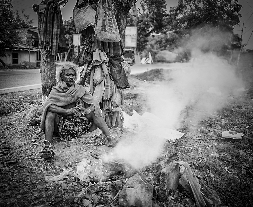 Moffassirul, this is a very interesting image. Indeed the man is deep in thought with his fingers crossed and looking down. From all the paraphernalia in the background we could guess that he spends most of his time on that spot. I cropped the image slightly to remove distracting elements and using Nik's Viveza (free from google) I increased the brightness of the smoke, and reduced its structure, made the smoke more dense. Added a vignette to make the image more intimate. |