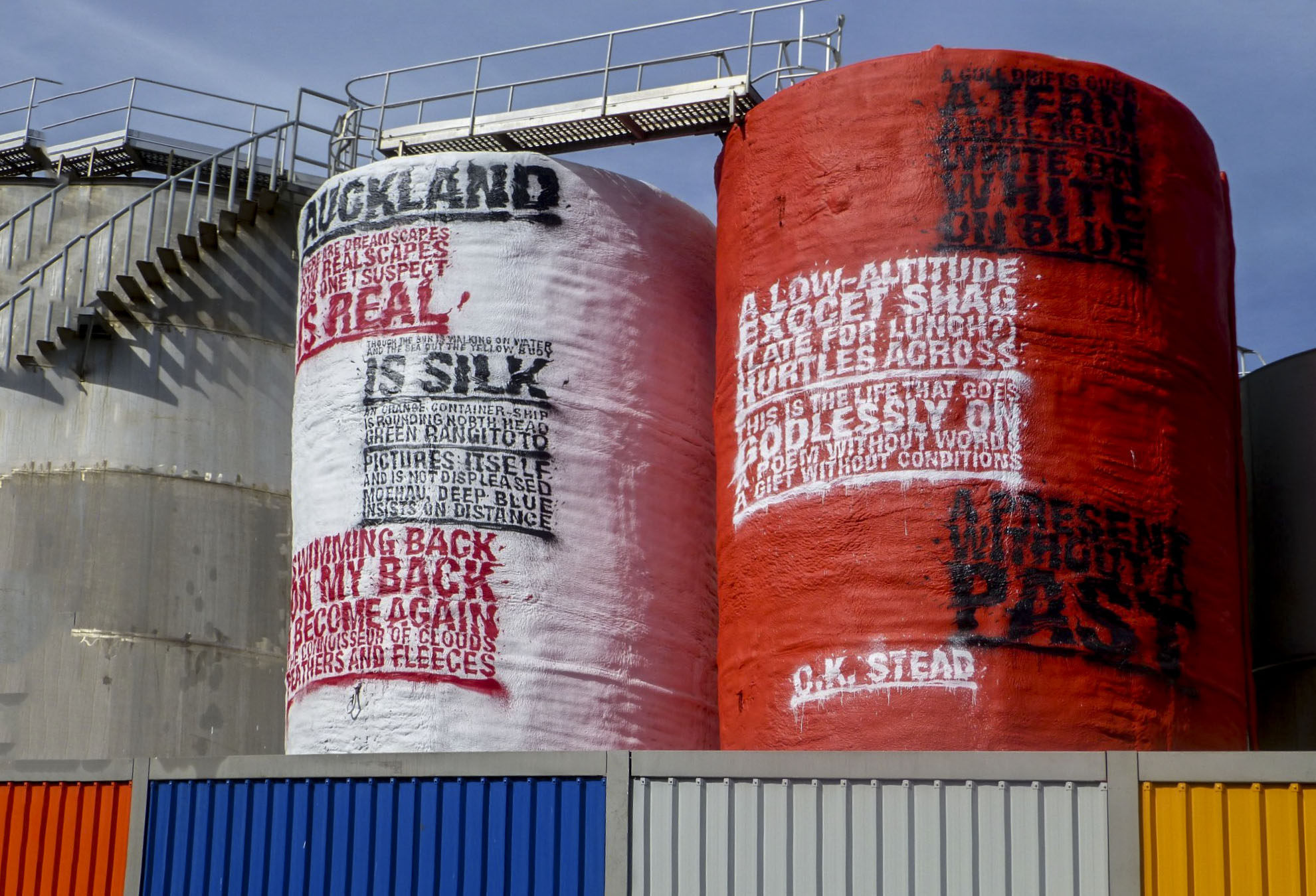 Liz, great urban image, with lots of color and interesting messages. Because of your vantage point there is distortion in the perspective. I agree with Daniel that the white tank is distracting so I cropped it. Also in photoshop playing with the warp tool I straightened the tanks and the colorful fence to make it less distracting and still adding the color elements. |