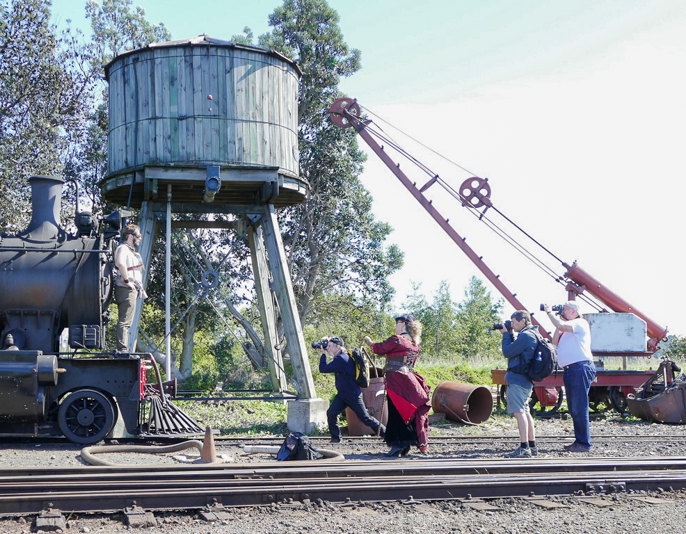 Liz, interesting image of photographers at work, and models as photographers as well/ I like the way the crane and the round tank frame the people. The photographer in the front is adopting a tripod like standing position. The light is a little harsh and contrasty. I reduced the highlights and the whites and added some exposure and light to the shadows to bring more detail out. Gloria's B&W interpretation is also q good option. |