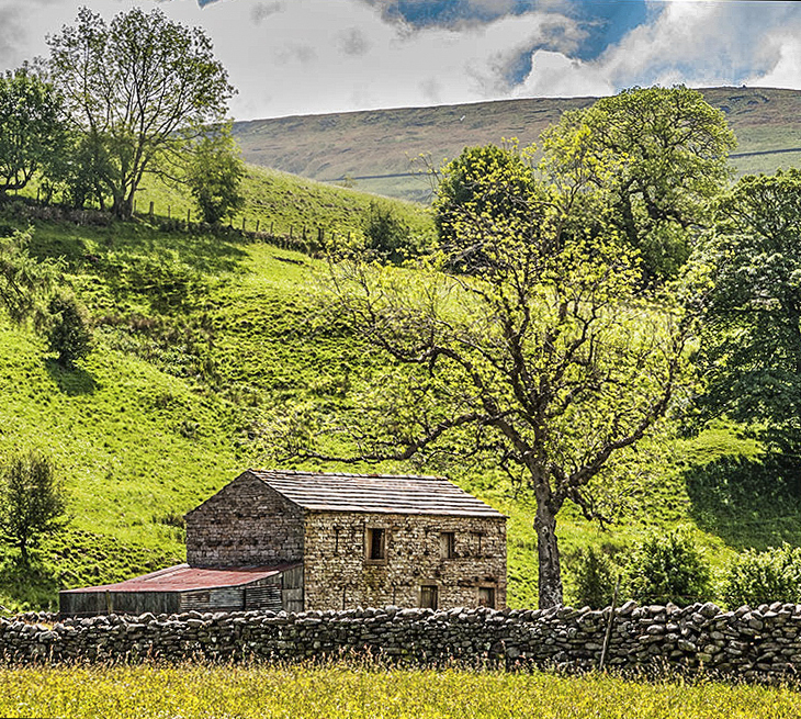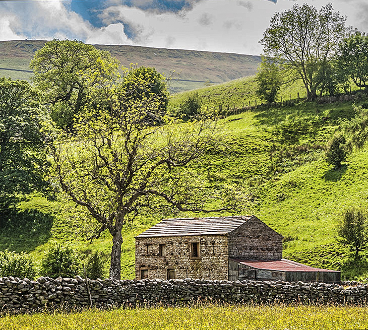 Guy, very relaxed landscape view. Sharp. I applied Erik's suggestions to add detail to the stone barn and wall, used a gradient filter adjustment to darken the sky and cropped the image to give emphasis to the stone barn. |