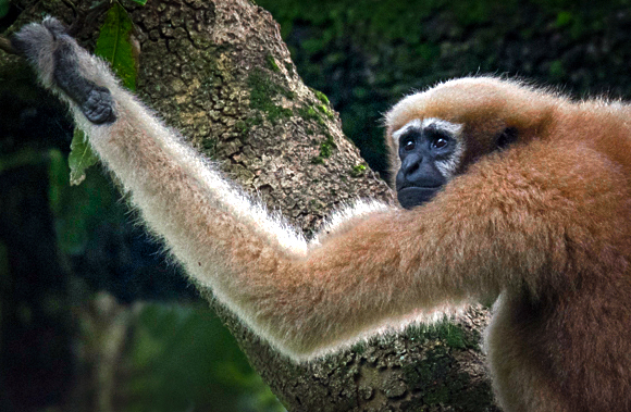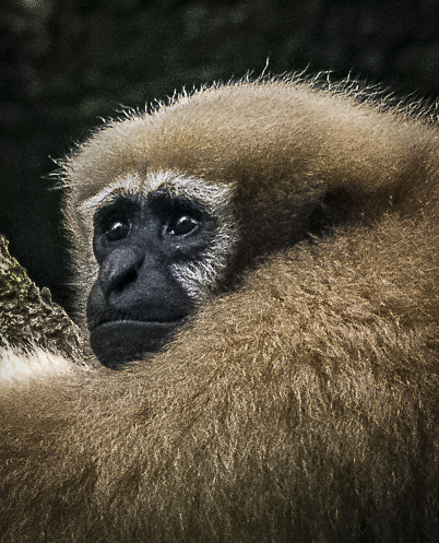 Abhijeet, great capture. By principle, we should not amputate any limb in our subjects, unless it is strictly necessary. Here, I PP your original image keeping the arm, which in fact works as a leading line towards the monkeys face. I did clone out all the bright areas which are distracting. I tried to reduce the brightness to the backlit fur with only minimal benefit. Now the face is in the 1/3. I added a vignette to bring our view to the monkey's face.