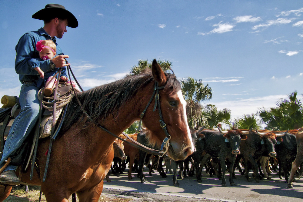 Jim, in general I like the context of your image showing the central point which is the cowboy with the baby in his hands. He and the baby are sidelited with nice shadows. Now the horse and the rider whose boot is partially amputated, take half of the frame and foreground creating some tension. The background represented by the cattle and riders (one of which is right at the edge, also creating tension)so I cloned him out rather that cropping. Also flipped the image. |