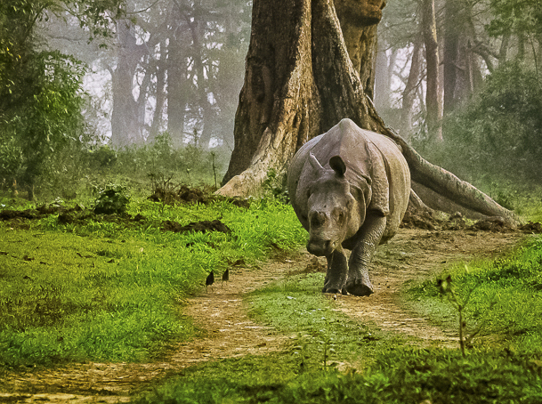 Abhijeet, You captured the One horned Rhino in its natural environment. Now you just used 150 mm of your 600 mm lens, therefore so much open space. You were able to bring out a lot of color and detail in your PP, but still there is a lot of open space in your crop. I think that a tighter crop brings prevalence to the Rhino and also gets you a perspective about size, compared to the two black birds, still shown the creature in its natural environment. The path also works as a nice leading line |