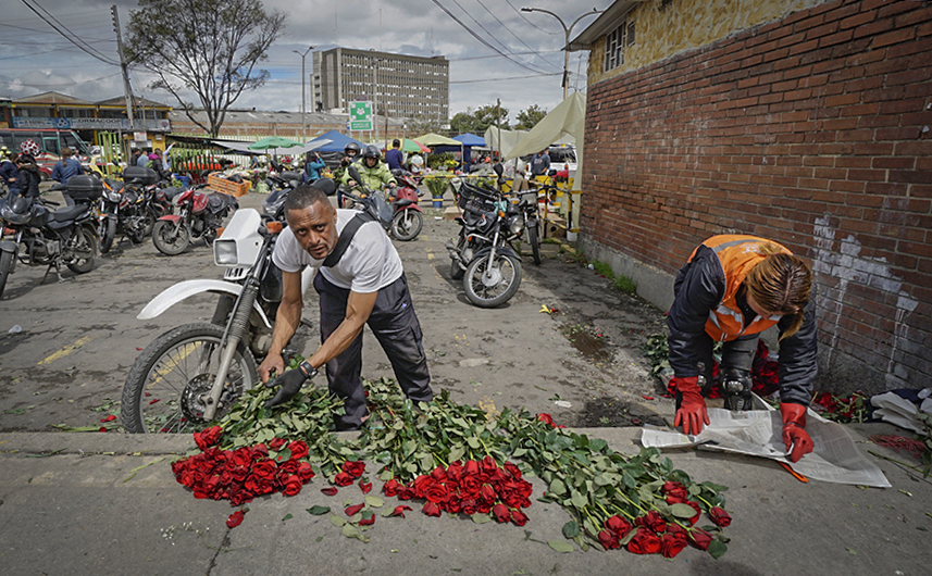 Deborah, good photojournalistic/travel photo showing activity in the flowers market. I see that you lowered your vantage point to the level of the workers. I added some light to the shadows, made the foreground straight, and cropped some of the distracting additional motorcycles.
