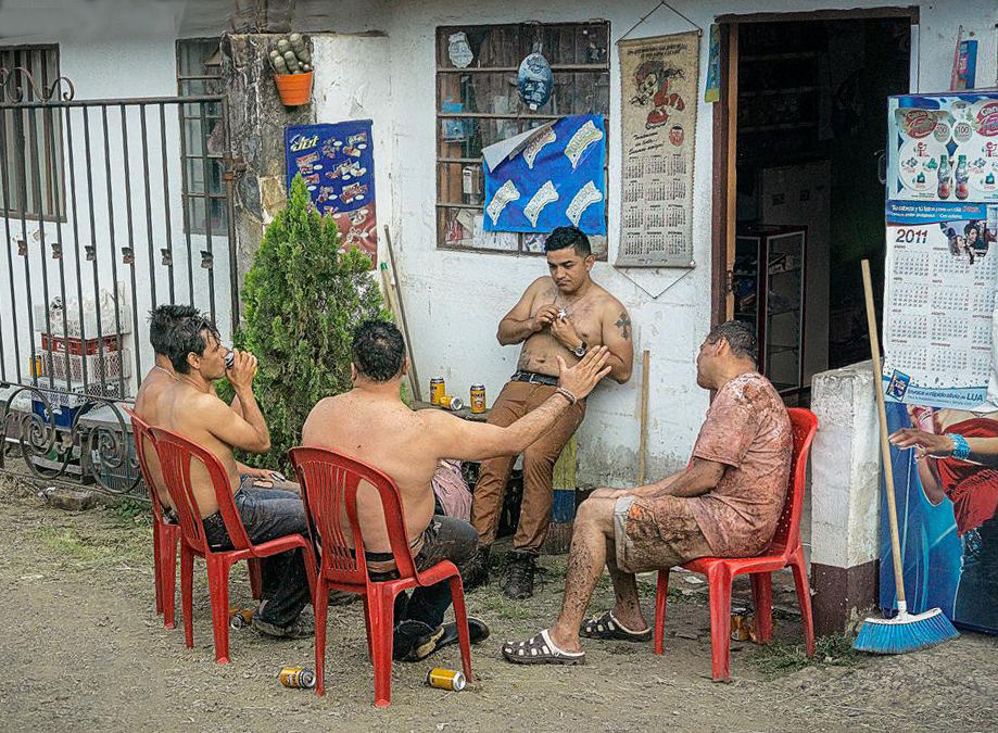 Deborah, interesting image and indeed they are going through a few cans of beer. I agree with you that the presence of the bike competes with the main subjects. It is sharp. They need to update their calendar. I made the verticals straight without loosing much landscape. |