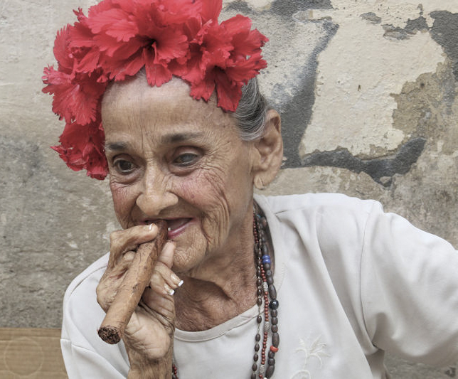 Jim, very colorful image. It is one of the iconic of la Havana-Cuba. The ladies pose and want you to give them something. She happens to have an unlit cigar, and she seems to have a cataract on her left eye (the doctor in me....) The red cayenne flower arrangement on her hair really draws your eyes to see her face, and also notice that she has only 1 teeth. She is looking away from the camera to make the set up more intriguing. I cropped some of the empty space in front of her. It is sharp. |