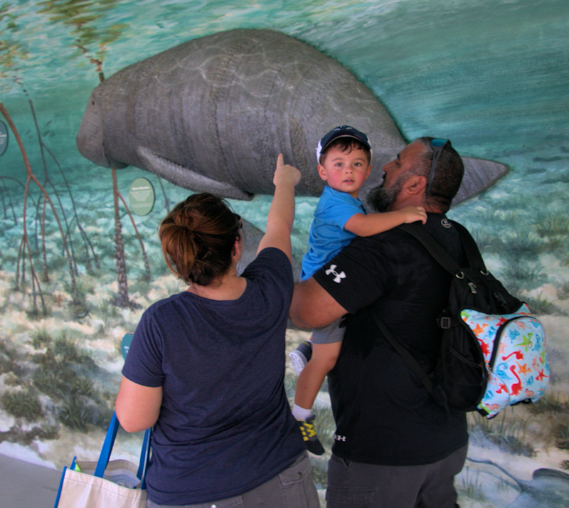 Jim, indeed the kid is more interested in you than the manatee. Interesting and nicely done mural. The "mother"is trying to get the kid's attention towards the mural with no success. The image is sharp. I cropped the image to place the kid off center, and added a slight vignette to guide the viewer towards the kid. |
