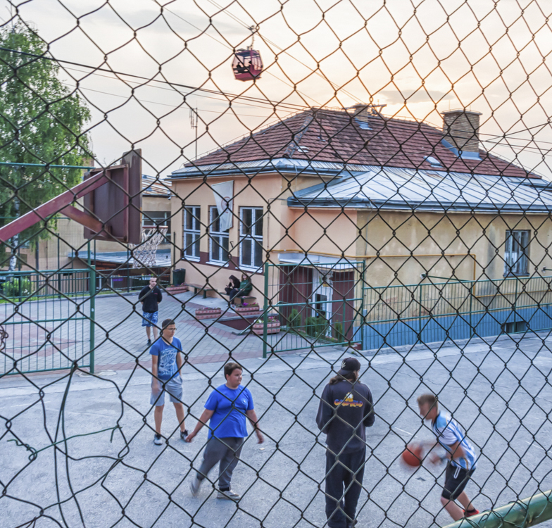 Hassan, the 1/20 sec shutter speed allowed for the blurred motion of the arm and basket ball at the right lower corner of the frame, and also is interesting that the fence as well as the players and background are in focus including the cable car. I do not know if you could have changed your vantage point to include the whole body of the players. I prefer a tighter crop, eliminating some of the empty space. |