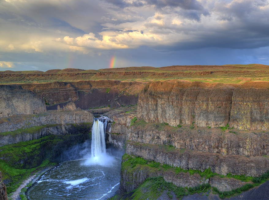 Bruce, I went to the Palouse a few years ago, but did not see the waterfalls. Great composition, very bright colors, sharp, nice silky water, and you have the aded bonus of two rainbows in the image. I did a different crop eliminating some of the black in the lower corner and a bit of sky, but still keeping the landscape orientation.