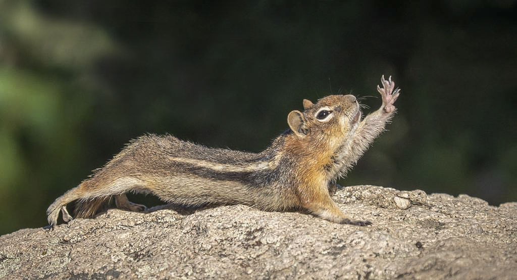 Pierre, great " The moment it clicks" capture. Looks like it is coming out from down facing dog yoga position. It is a little soft and the bright patches in the background are somehow distracting. I decreased the brightness, added sharpness and detail, and working with the lasso tool and content aware cleaned some of the background in small patches. |