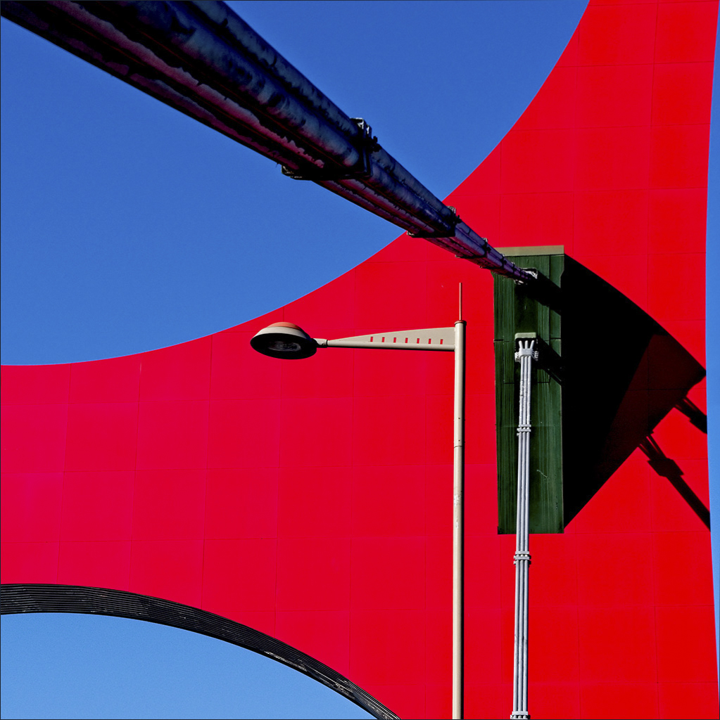 Guy, this image is a symphony of colors and shapes, and is abstract as well. The presence of the light pole adds curiosity to it, and the shadow gives tridimensional character. You really did a great job in the composition (walking the image). The wire works as a potent leading line towards the red structure. The treatment of the colors is also very good. |