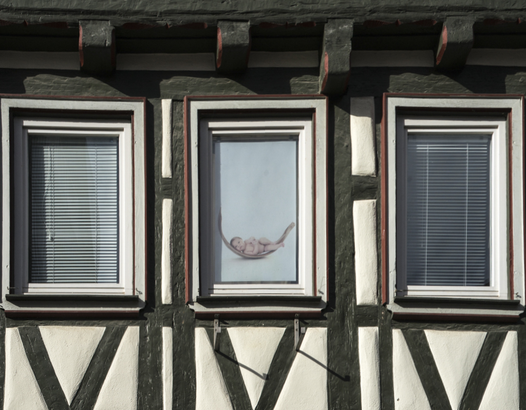 Daniel, interesting image created from a difficult vantage point, since we get keystoning (distortion) of the image for pointing the camera up. The image is balanced for the presence of the three windows, being the central one harboring the baby image lying in a hammock and the other two showing different contents. The three windows are framed by the decorative elements in the wall. I used a combination of Adobe Camera Raw and Photoshop (Warp) to straighten the windows and eliminate the keystoning effect. It is sharp. |