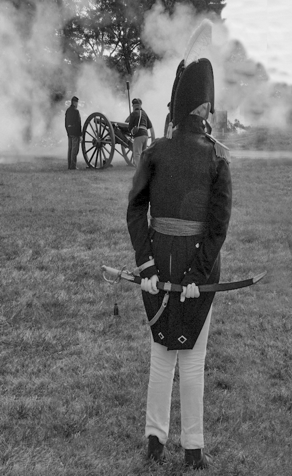Jim, interesting image of the reenactment, full of action given by the smoke from the firing canons. I believe that the officer looking away from us (given by his sword) is controlling the activities. I find the crop to be very tight and of unconventional ratio. I used photoshop actions: expand canvas and free transform to add real state to the frame, and then cropped to a more conventional ratio, and added some light to the shadows to see more detail. |