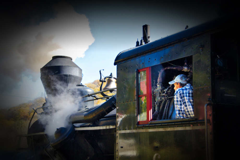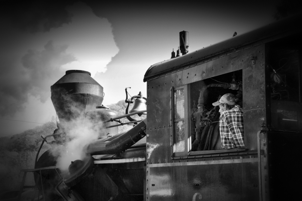 Jim, good photojournalistic image with historical value. It is amazing how this dinosaur machines still can run. I like Hassan's idea to emphasize the conductor and his control room. Did a selection and increased the brightness and shadows, and added a vignette to accomplish that. The B&W interpretation has more impact. |