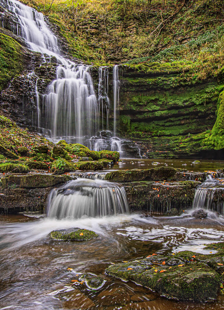 Adrian, what a lovely waterfall. Great composition taking a very low vantage point to be able to include all the steps of the fall and giving the impression (if not real) that the camera was at the water. The shutter speed was slow enough to obtain the desired silky look in the water any time a waterfall is photographed. The colors are well handled and your PP brought out the essence of them. I do see a slight yellowish hue in the water specially in the lower levels that I do not know if it is real. Anyways, for my taste; I reduced the brightness in the water and now we see more detail, and reduced the yellowish hue, and I flipped the image. |