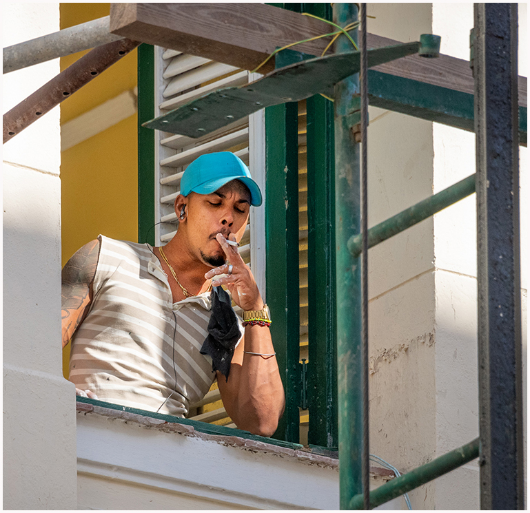 Les, the Cuban people do not loose their identity in spite of the miserable conditions they have been subjected by the "Revolution" in the past 60 years. They are always enjoying life to the maximum and they do not pass an opportunity, like here; to sing and dance. The beat of the tropical music/salsa is difficult to ignore. My guess is that one of the musical group members invited a tourist/bystander to dance. The image is sharp, the colors are very vivid. The light is harsh and the image is backlith, so the PP made it look quasi HDR rendition. My only observation is the tight crop on the right (my right) where the woman's arm is touching the frame. Cropping her completely would take away the space for the dancers to move into. Trade off ?? |