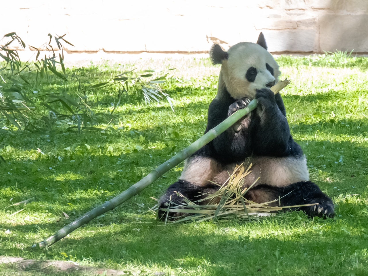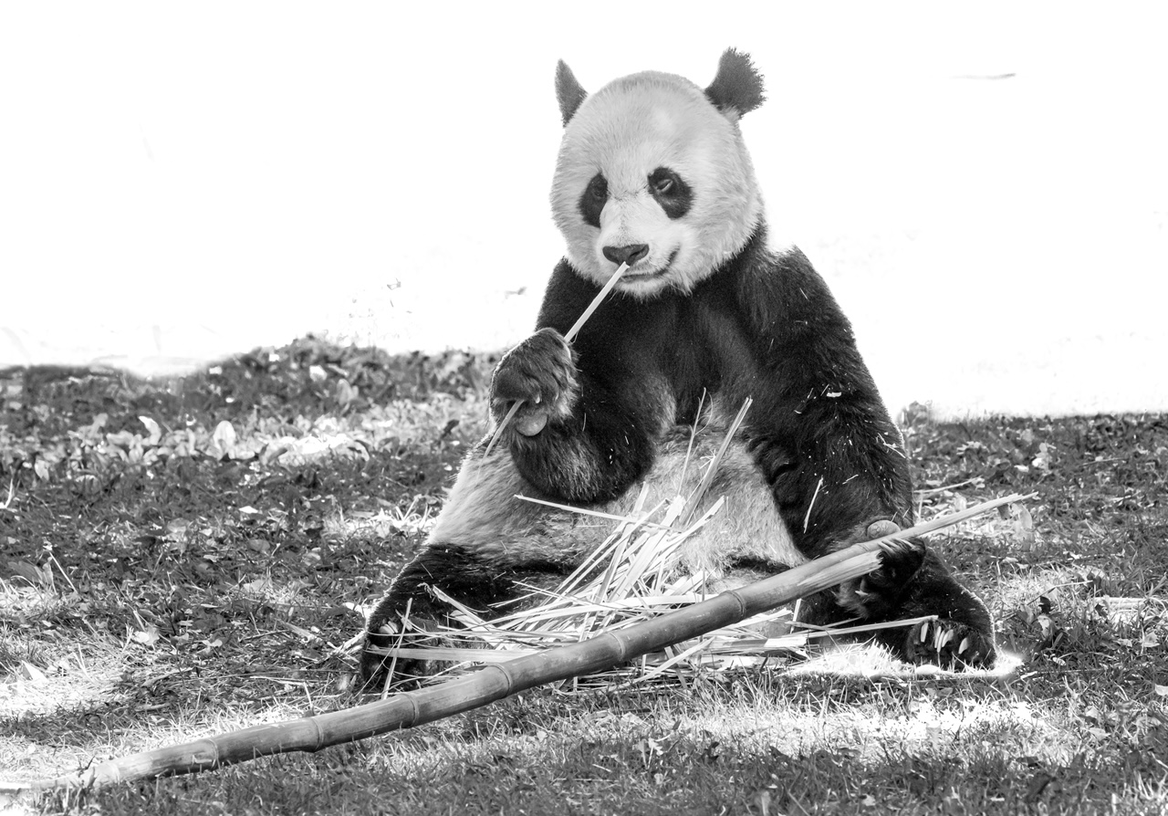 I have these set of images where the pandas were facing the camera but the harsh light with very bright background made the condition difficult to photograph. One in color and the other one playing to get a high key image |