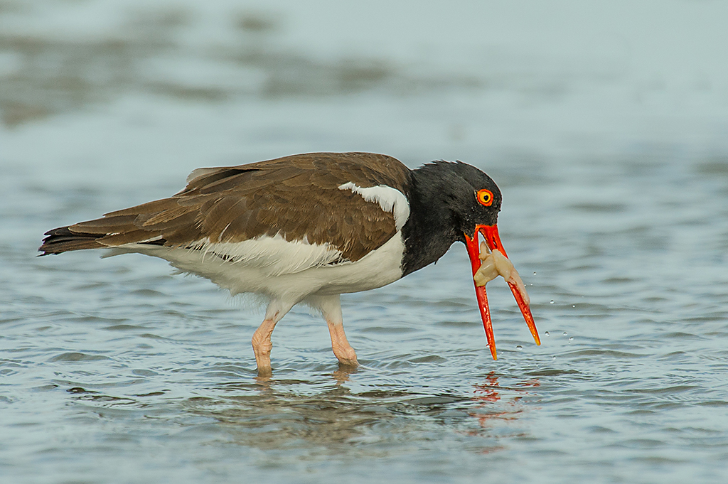 This is an American Oystercatcher after extracting the meat from the shell. Different plumage color. |