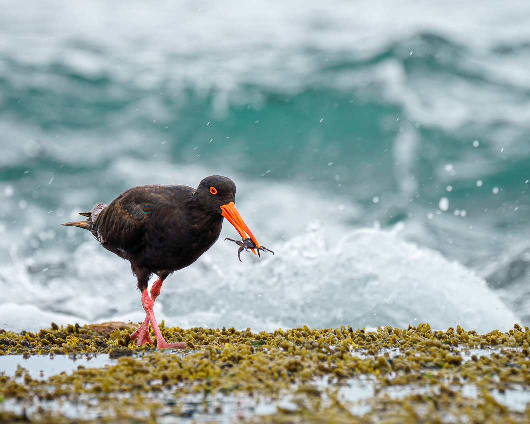 Maria, the winner in this image is your vantage point. You really went down. The bird is very sharp, and as Bruce said, the little crab is the cherry on top of the icecream. I did my own crop version and eliminated some of the empty space that does not add to the picture and makes the bird smaller overall. I also added some light and contrast to the bird |