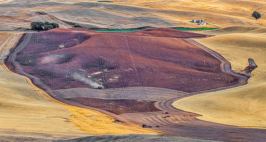 Bruce, great light in the Palouse from Steptoe. What time of the day was this ? I have been there twice. Once in May and the fields were green as you show it here, and once in October after the wheat was cut, and it is a completely different landscape. The rolling hills are really unique. The image is sharp. Here is the image in October |