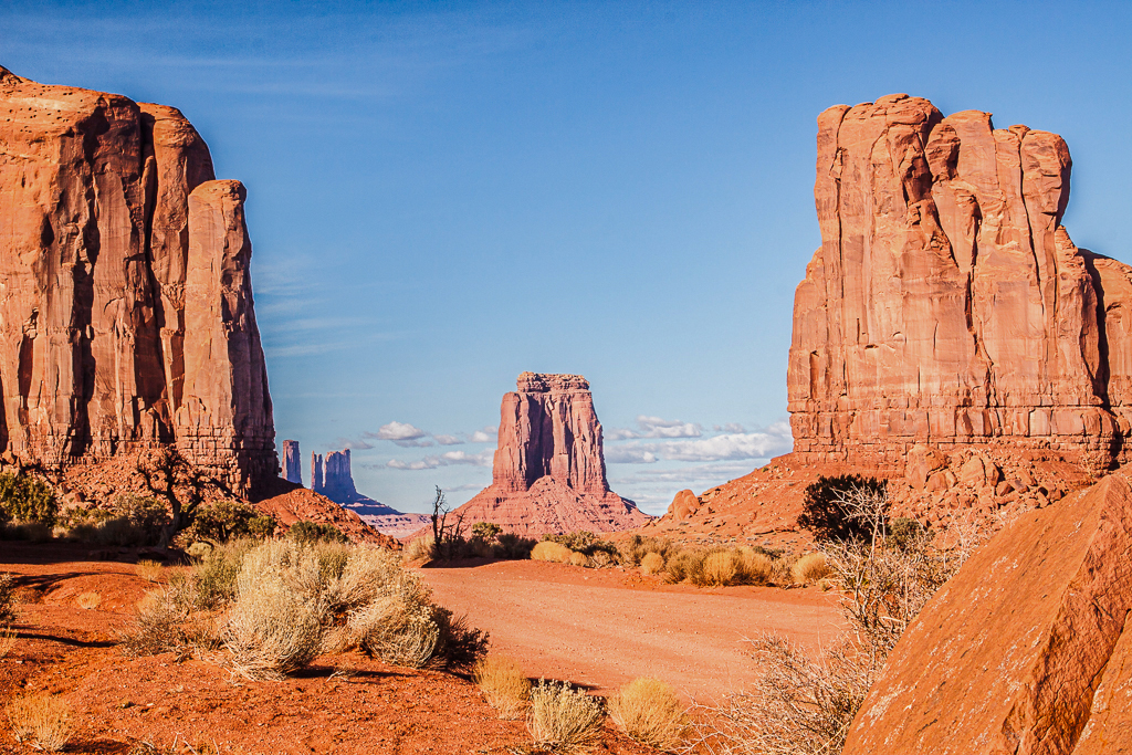 Adrian, this is a timeless image of the Monument Valley. I like your vantage point showing three structures in the frame and part of the local landscape. The image is sharp. I find it a little too bright, so I lowered it. |